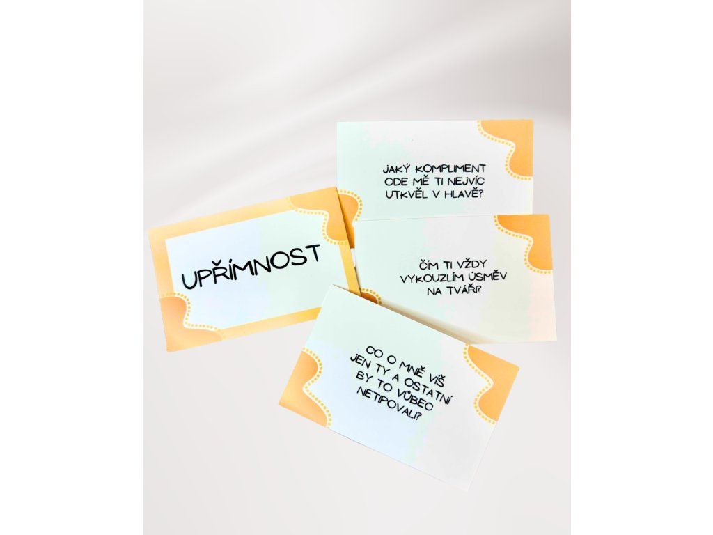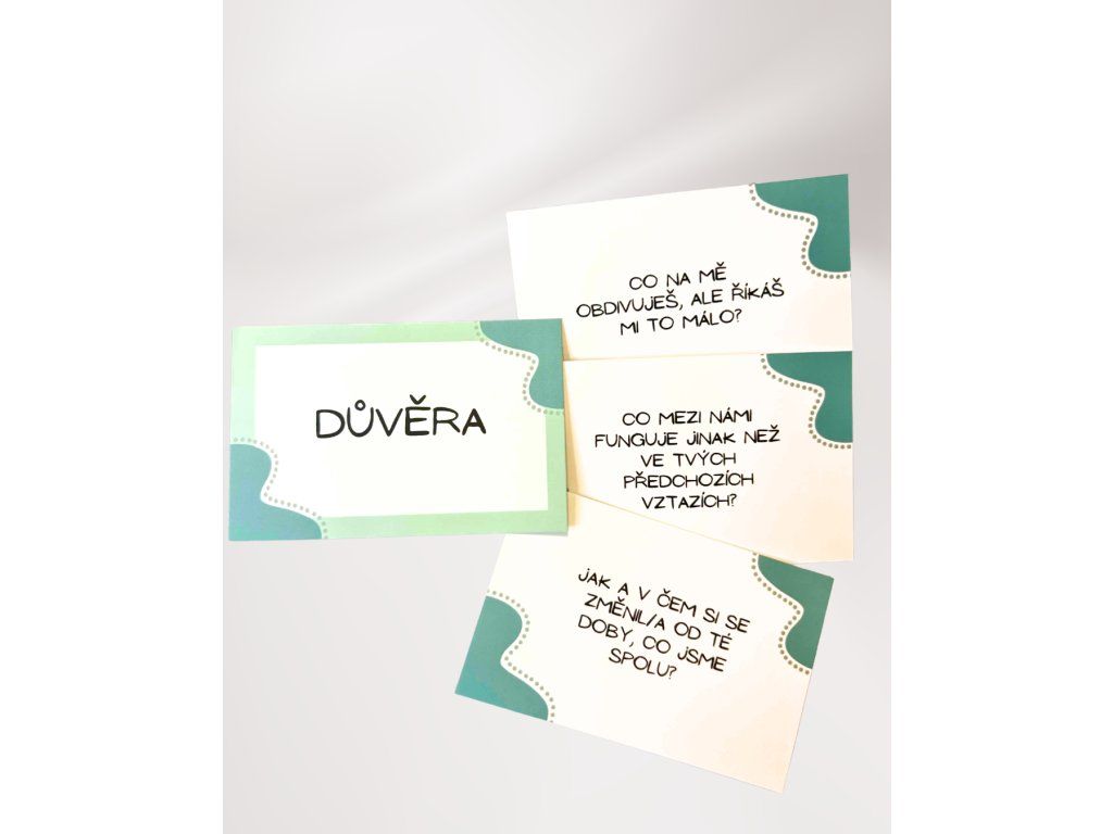 Otázky jsou srozumitelné, promyšlené a vytvořené tak, aby otevíraly témata, která v běžném shonu často zůstávají nevyřčená. Můžete si zahrát pár karet, nebo rovnou celou sadu – pokaždé se dozvíte něco nového.